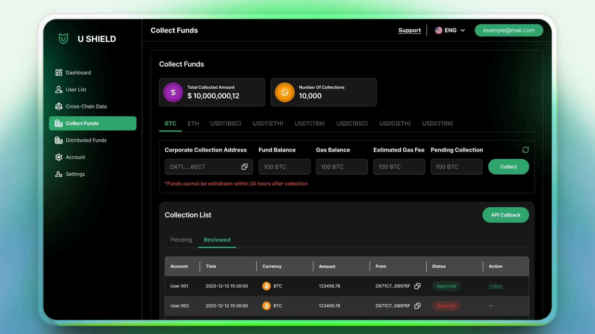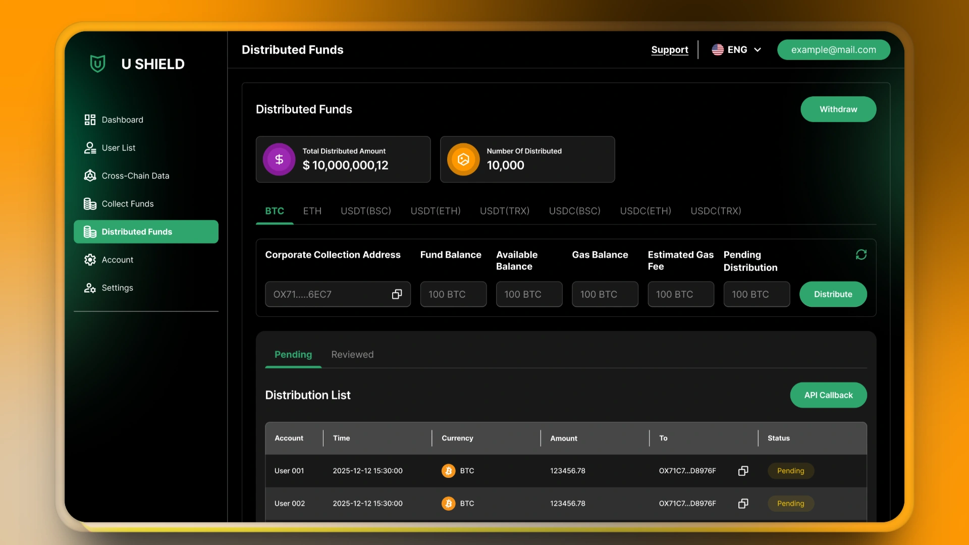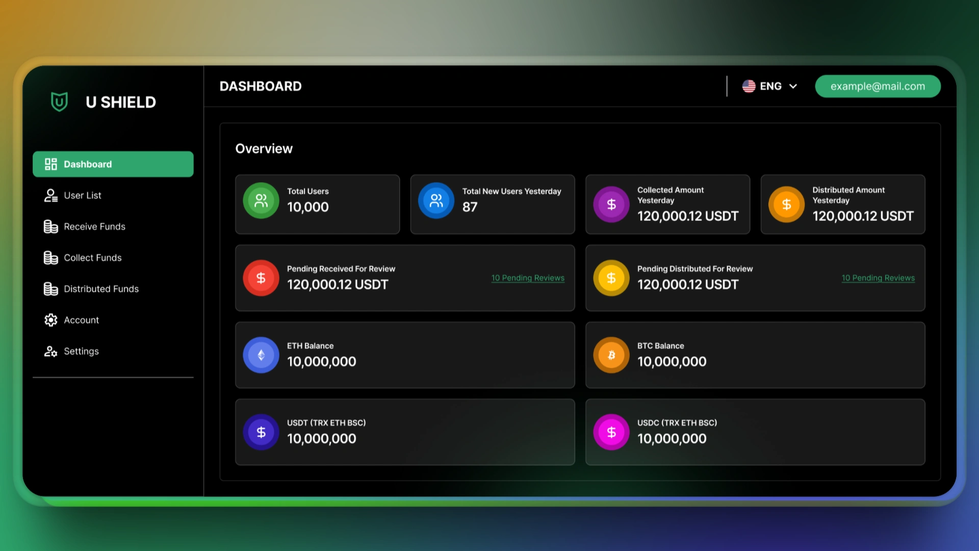 U Shield empowers enterprises with secure, efficient, and decentralized digital asset management — ensuring safety, stability, and full control at every level.
