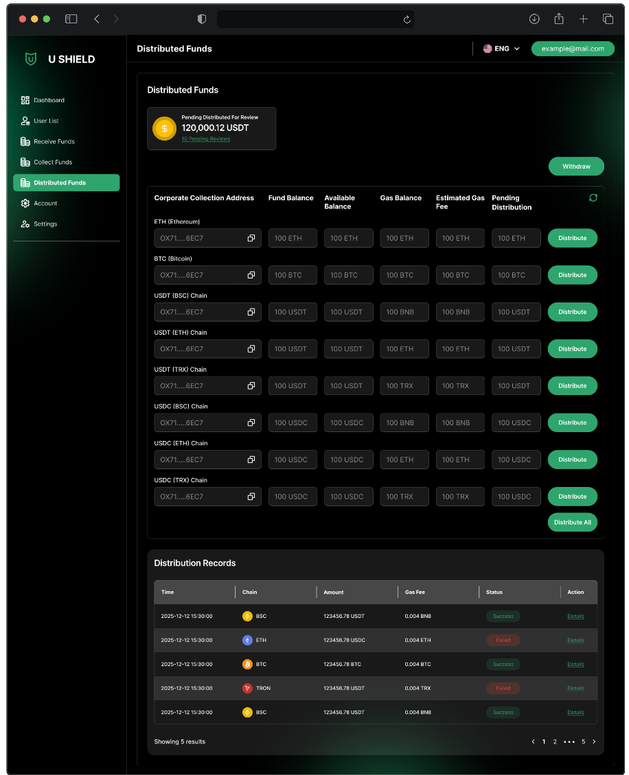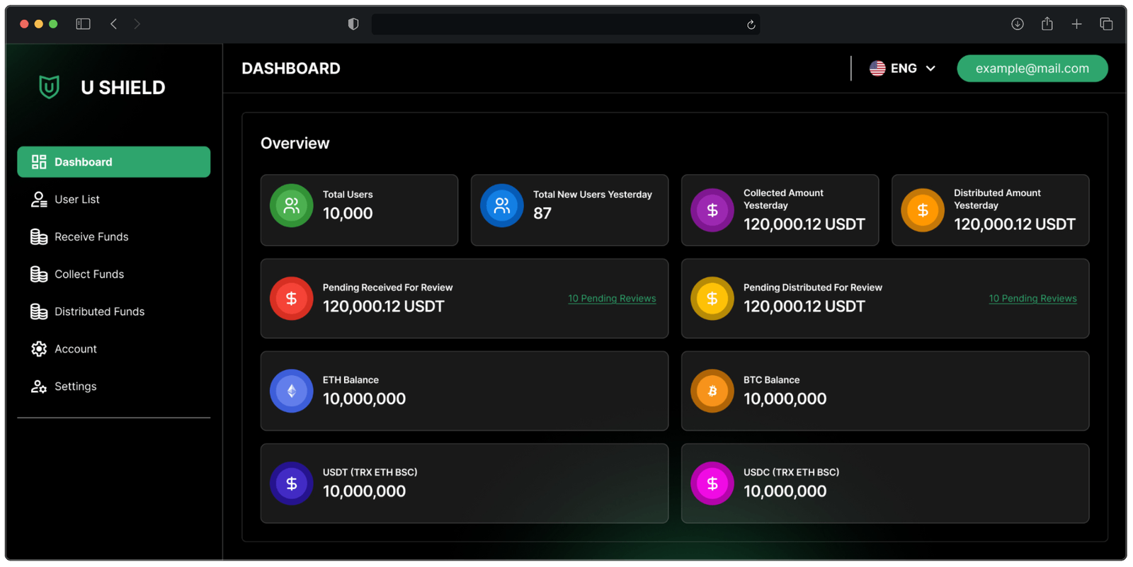 U Shield empowers enterprises with secure, efficient, and decentralized digital asset management — ensuring safety, stability, and full control at every level.